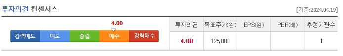 컨센서스도 매수 의견이 보입니다. 다른 증권사에서도 목표주가를 제시해줬으면 하는 바람입니다.