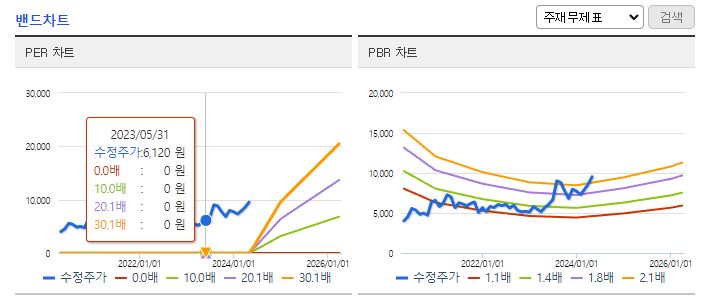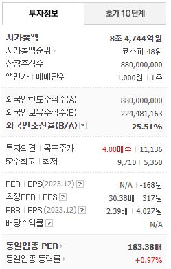 차트상 최저 5,350원에서 최근 최고가는 9,710원입니다. 엄청상 주가 상승 흐름 추이를 보이고 있습니다.