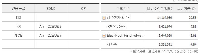 주요주주 현황에 국민연금공단이 있고, 지분율이 7.88% 입니다.