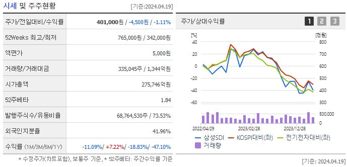 그렇다면 삼성SDI 주가 전망은 어떻게 될까요? 최근 흐름을 보겠습니다.