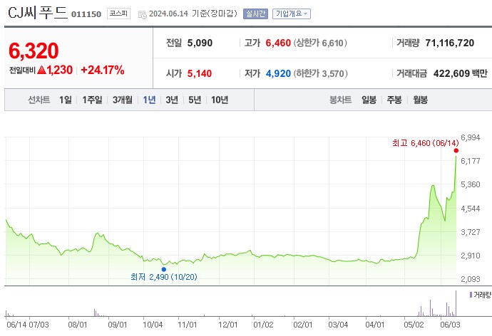 식품관련 대장주 CJ씨푸드는 1976년에 설립된 대한민국의 대표적인 수산물 가공업체로, 다양한 수산물 제품을 생산하고 있습니다. CJ그룹에 속해 있으며, 신선하고 고품질의 수산물을 제공하는 데 중점을 두고 있습니다.