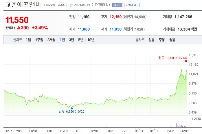 교촌에프엔비는 치킨 프랜차이즈 시장에서 강력한 브랜드 파워를 가지고 있으며, 지속적인 메뉴 개발과 품질 관리를 통해 고객 만족도를 높이고 있습니다. 해외 시장에서도 교촌치킨의 인기를 바탕으로 확장을 이어가고 있습니다.