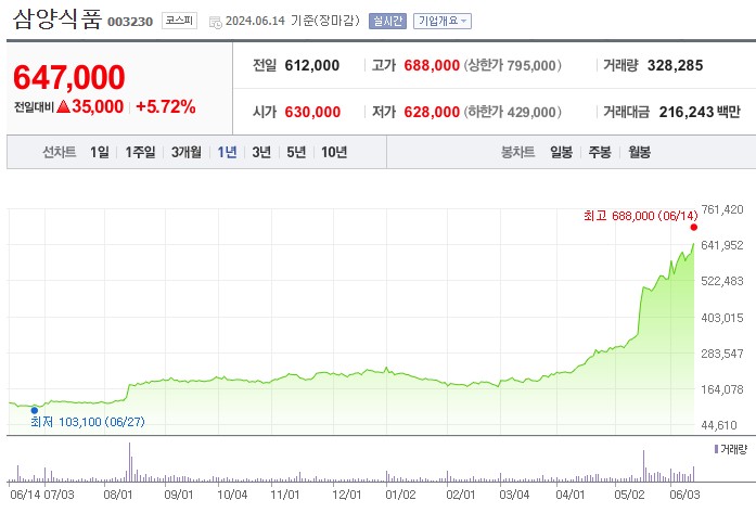삼양식품은 국내 라면 시장에서 강력한 브랜드 파워를 가지고 있으며, 특히 해외 시장에서도 불닭볶음면의 인기로 높은 매출을 기록하고 있습니다. 지속적인 신제품 출시와 품질 개선을 통해 성장세를 이어가고 있습니다.