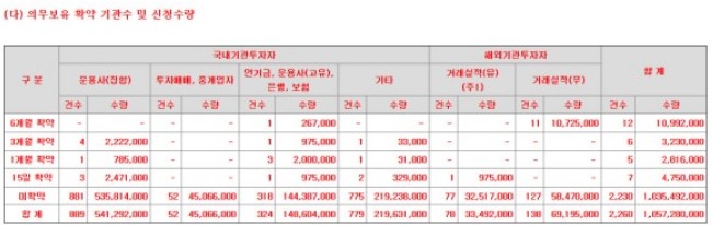- 의무보유확약 : 건수 1.33% / 수량 2.06%