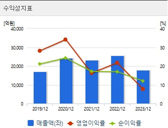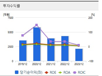 당기순이익: 2021년 3,957억 원, 2022년 4,040억 원, 2023년 2,139억 원