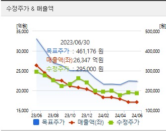 투자기관의 목표 주가는 247,059원으로 제시되고 있으며, 52주 최고가는 303,000원, 최저가는 163,600원입니다. 현재 주가는 198,200원으로 전일 대비 6.56% 상승한 상태입니다.