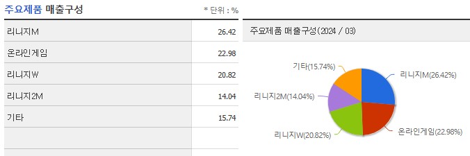다양한 온라인 게임을 개발 및 서비스하고 있으며, 이는 전체 매출의 22.98%를 차지합니다. 주요 게임으로는 '블레이드 & 소울', '아이온', '길드워' 등이 있습니다.