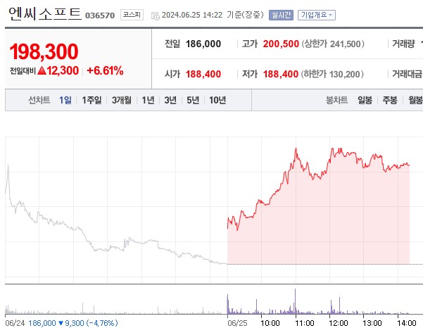 엔씨소프트(NCSoft)는 1997년에 설립된 한국의 대표적인 게임 개발사로, 서울특별시에 본사를 두고 있습니다. 온라인 게임, 모바일 게임, AI 및 블록체인 기술을 활용한 다양한 게임 콘텐츠를 개발하고 있는데요, 오늘 주가 상승 흐름이 좋습니다.