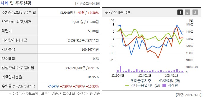 우리금융지주 주가 결론