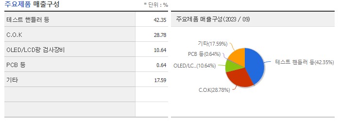 매출구성에서도 테스트 핸들러의 비중이 압도적으로 높습니다.