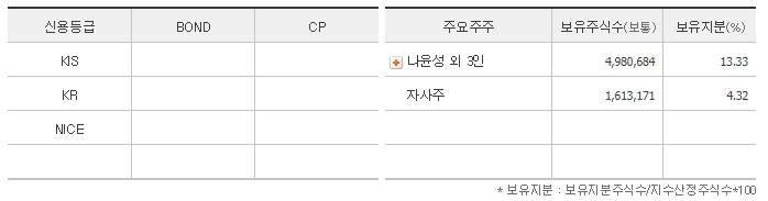 보유주식수를 보니 나윤성 외 3인, 자사주로 구성되어 있습니다. 코스닥 종목이라서 국민연금의 물량이 보이지 않는군요.