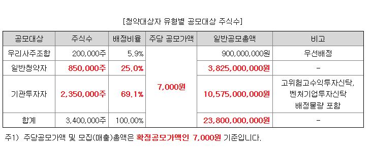 일반인들은 85만주를 나눠서 배정받게 됩니다.