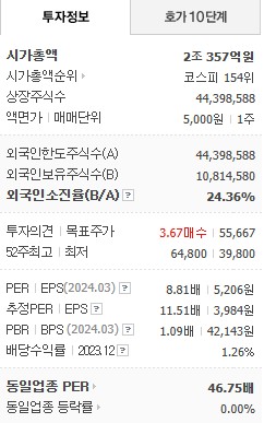 PER (주가수익비율): 8.81배 (2024년 3월 기준)