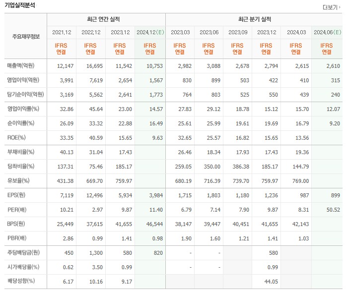 BPS (주당순자산): 42,143원 (2024년 3월 기준)