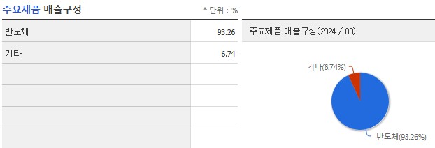 2024년 3월 기준, DB하이텍의 주요 제품 매출 구성은 다음과 같습니다.