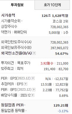 2023년 동안 SK하이닉스 주식은 최저가 85,700원과 최고가 191,400원을 기록했습니다. 주가는 대체로 하락 추세를 보이며, 특히 하반기에 들어서 급락했습니다. 이러한 추세는 반도체 업계의 전반적인 침체와 글로벌 경제 상황의 영향을 받은 것으로 보입니다