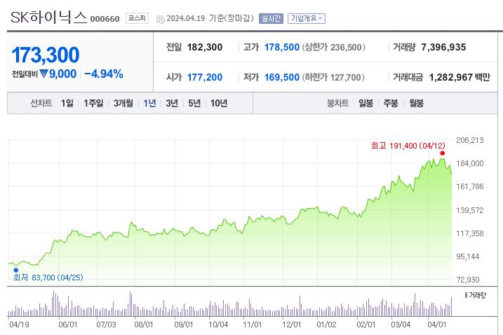 SK하이닉스 주가 가 최근 폭발적으로 상승한 뒤 잠시 조정의 국면을 거치고 있습니다. 최근 AI 반도체와 관련하여 매출도 상승하고 있는데요, 오늘은 SK하이닉스 주가 전망 기업분석, 배당금 정보 등을 알아보겠습니다.
